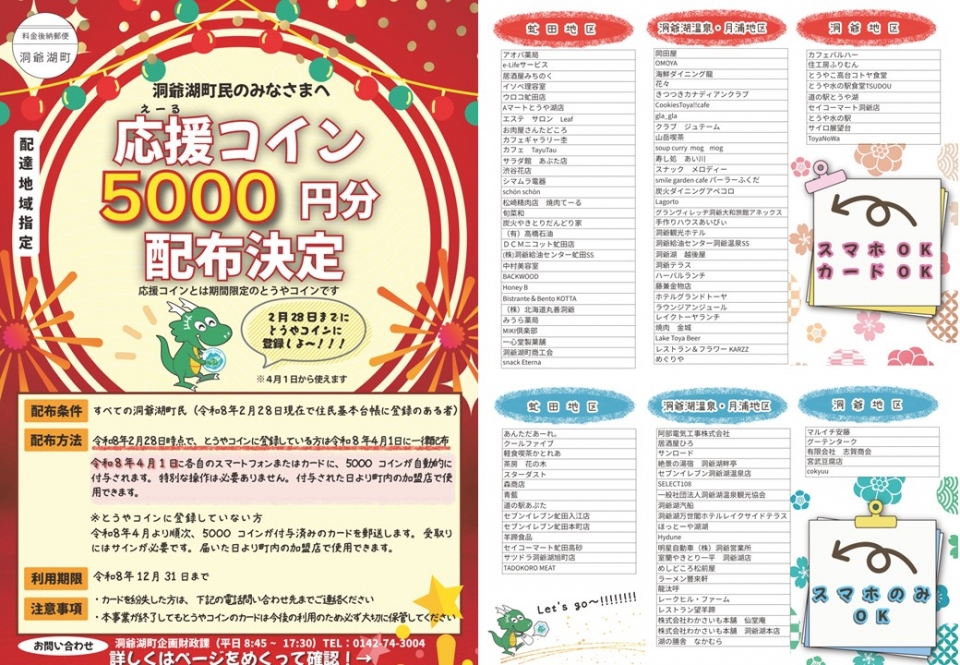 令和8年4月1日に各自のスマートフォンまたはカードに5000コインが自動で付与されます。